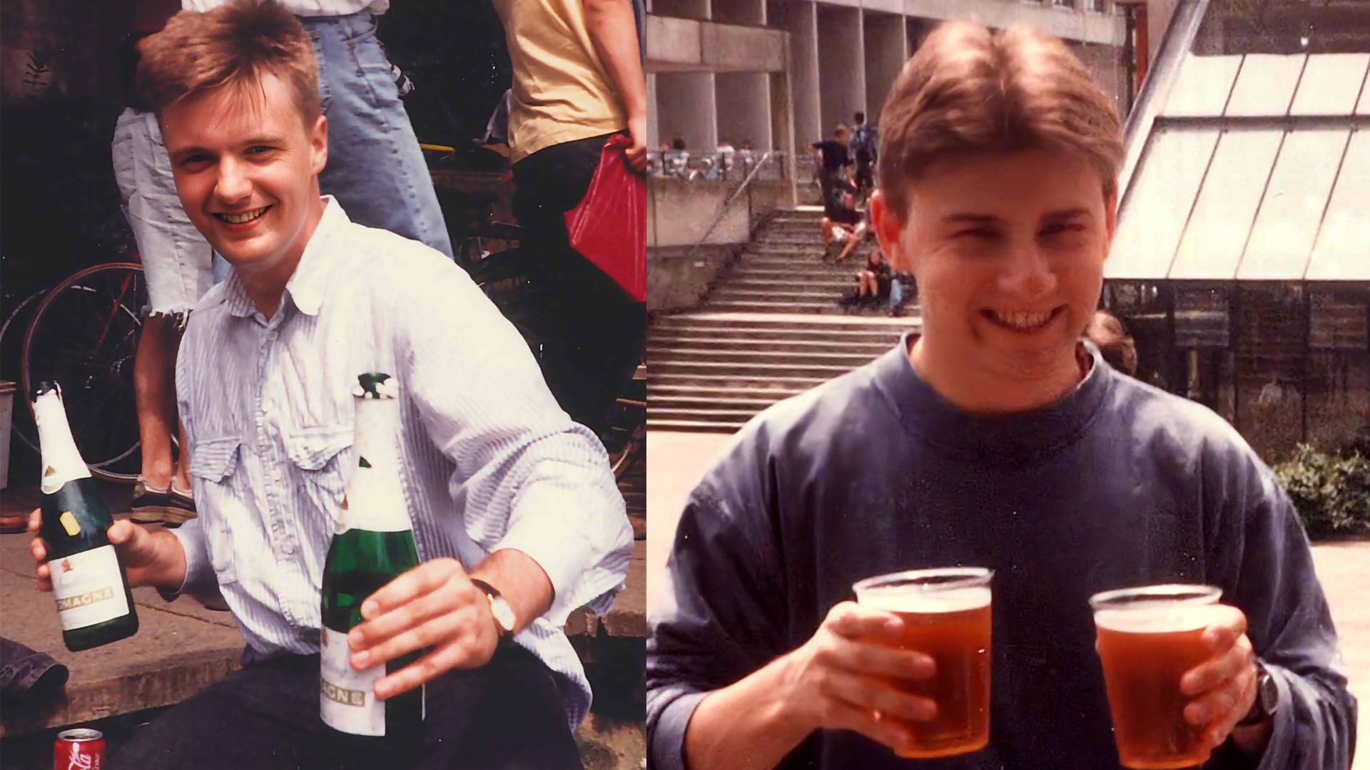 "The pic was taken in June 1983, on the day I had just taken my last Finals exam (French Honours; Lit major). Moments later, I and three friends got into a Ford Escort and drove down to the south of France for an end-of-uni-days holiday. As you can see, the mood is celebratory. And it is a very fond memory."